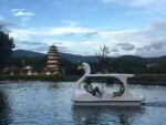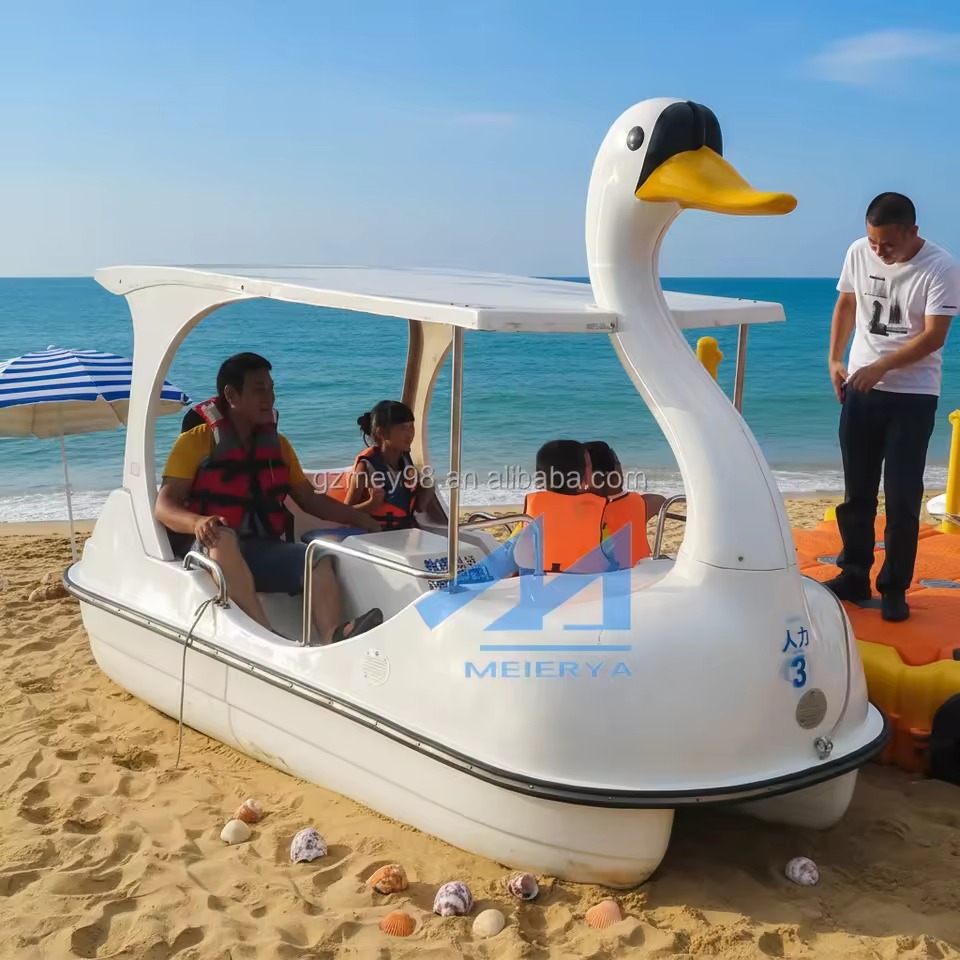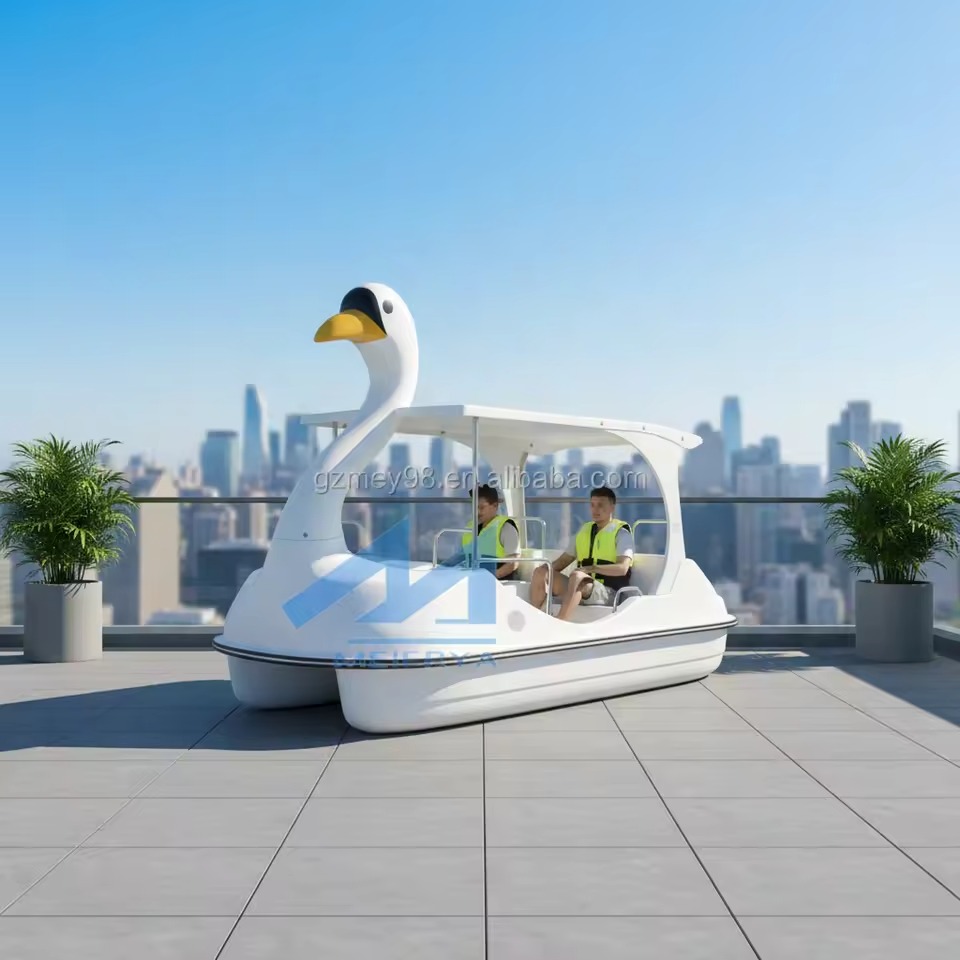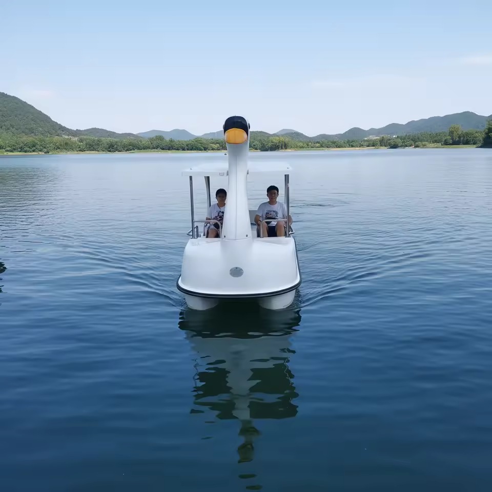 New Design Cartoon Swan Fiberglass Pedal Boat Waterplay Crafts Swan Pedal Boat for Sale Electric Water Ride Equipment